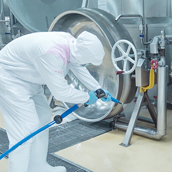 leaves the surface chemically clean, sanitized, and ready for the next production shift.
