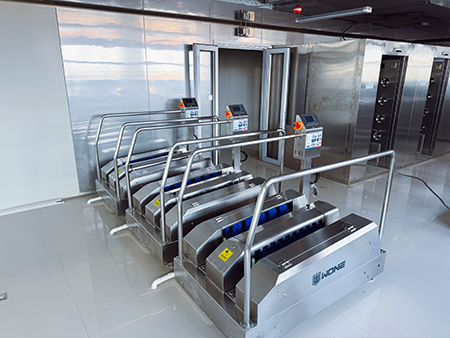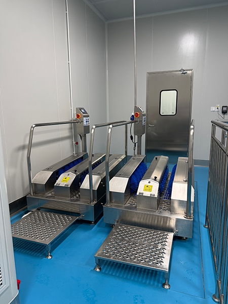 germs and track them into processing areas. That's why a good hygiene station often includes a boot cleaner—so employees can scrub off
