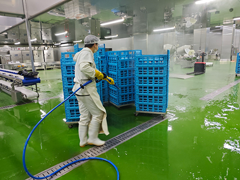 On top of personal hygiene, the factory itself needs regular deep cleaning. At the end of each day, everything in the processing area—