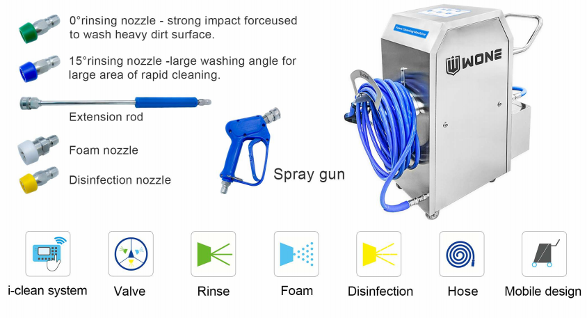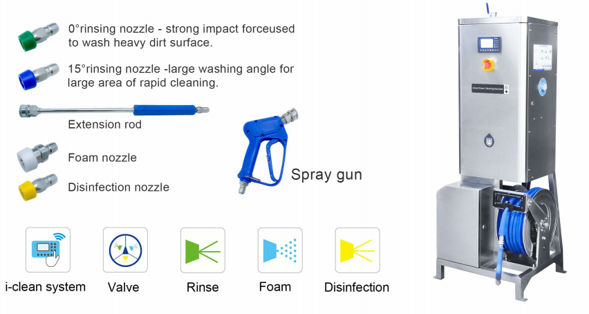 [5] Places with many contact/indirect contact surfaces requiring cleaning: Foam cleaning quickly forms foam and operates