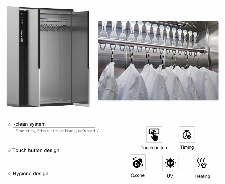 reducing manual operation and monitoring costs. The heating function removes moisture from work clothes creates a dry environment that is